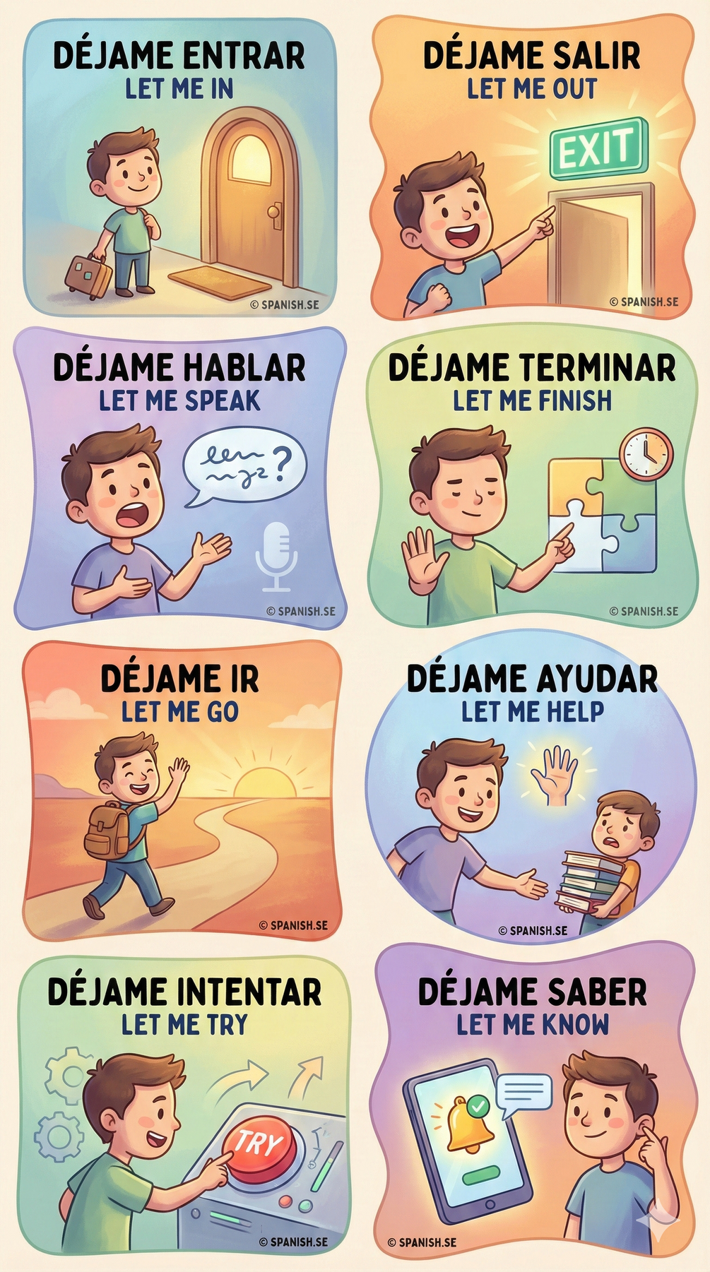 Real Spanish Phrases Explained Through Colorful Visual Scenes. See It. Understand It. Remember It. Speak It.